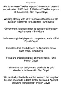 Aim to increase Textile Exports 3 Times from present export value